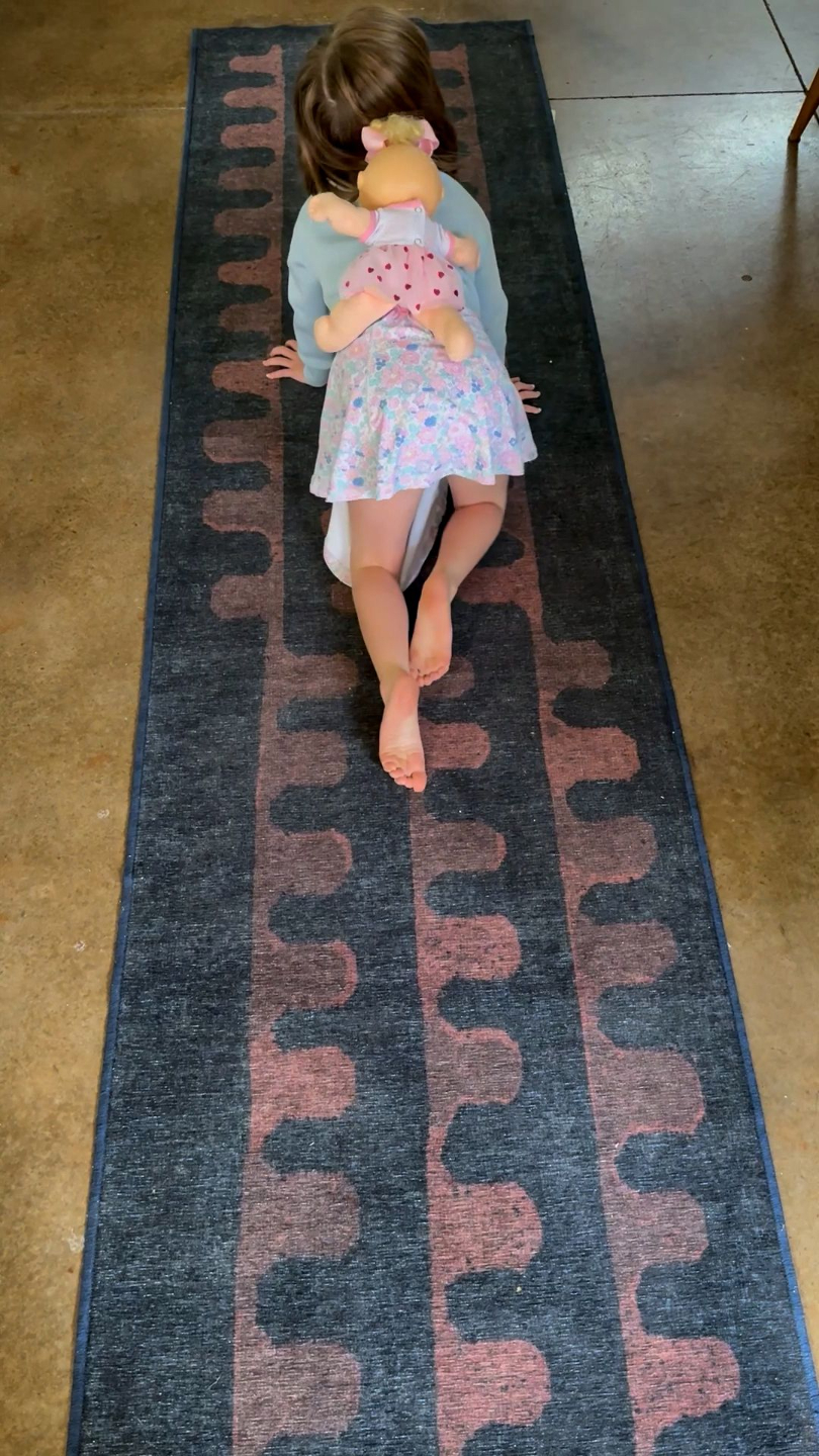 The goal here is to keep the stuffy/doll/toy of interest on back while crawling. Make it a relay or have them crawl through a tunnel or under a painter's tape “bridge” for added motivation! The goal here is slow controlled crawling.